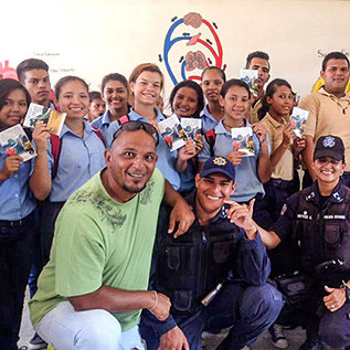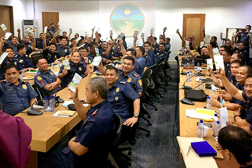 Vägen till lycka-ambassadören Jerry de Tagle arbetar med filippinska tjänstemän för att nå varje invånare på Filippinerna med de 21 levnadsreglerna i Vägen till lycka.