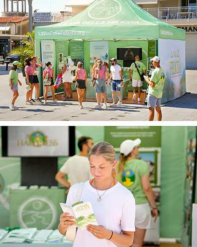 Besökare på en mobil utställning kan skaffa ett eget exemplar av Vägen till Lycka, titta på informationsvideorna eller till och med hela boken som film, eller ta ett QR-kodkort och börja den kostnadsfria onlinekursen.